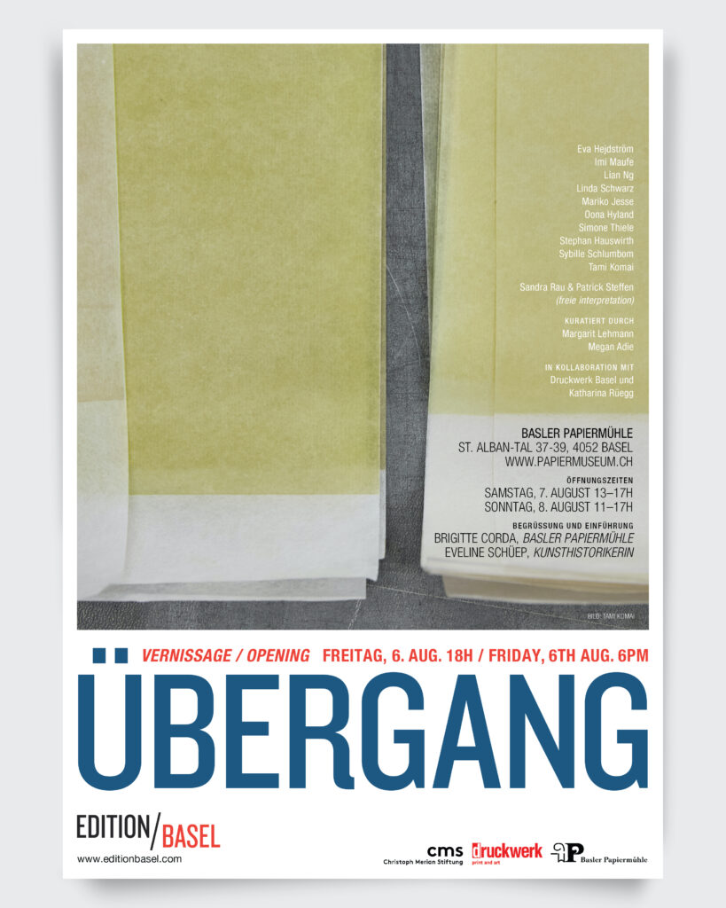 12 internasjonal kunstnere jobber intens for 9 dager med tema ÜBERGANG og stiller ut på Papiermühle Museum, Basel på siste helgen. Edition/Basel er kuratert av Margarit Lehmann (CH) og Megan Adie (DK/ USA).